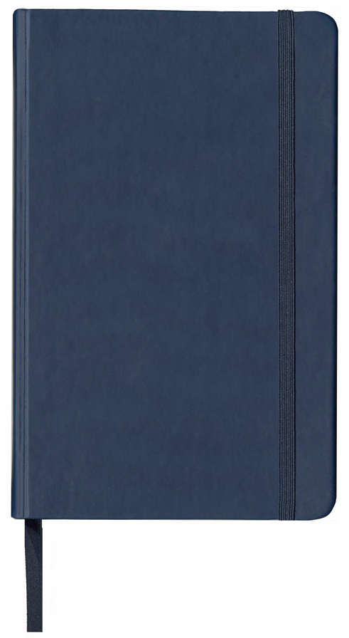 Hard cover lay-flat signature sewn reporter notebook with elastic band closure. Smooth faux leather cover. Matching satin page marker ribbon. Includes 5" x 8", 240 ruled cream pages. Inside back cover has an expandable pocket. Colors: Red, Navy Blue and Black. Product Measurements: 5" x 8 1/8".